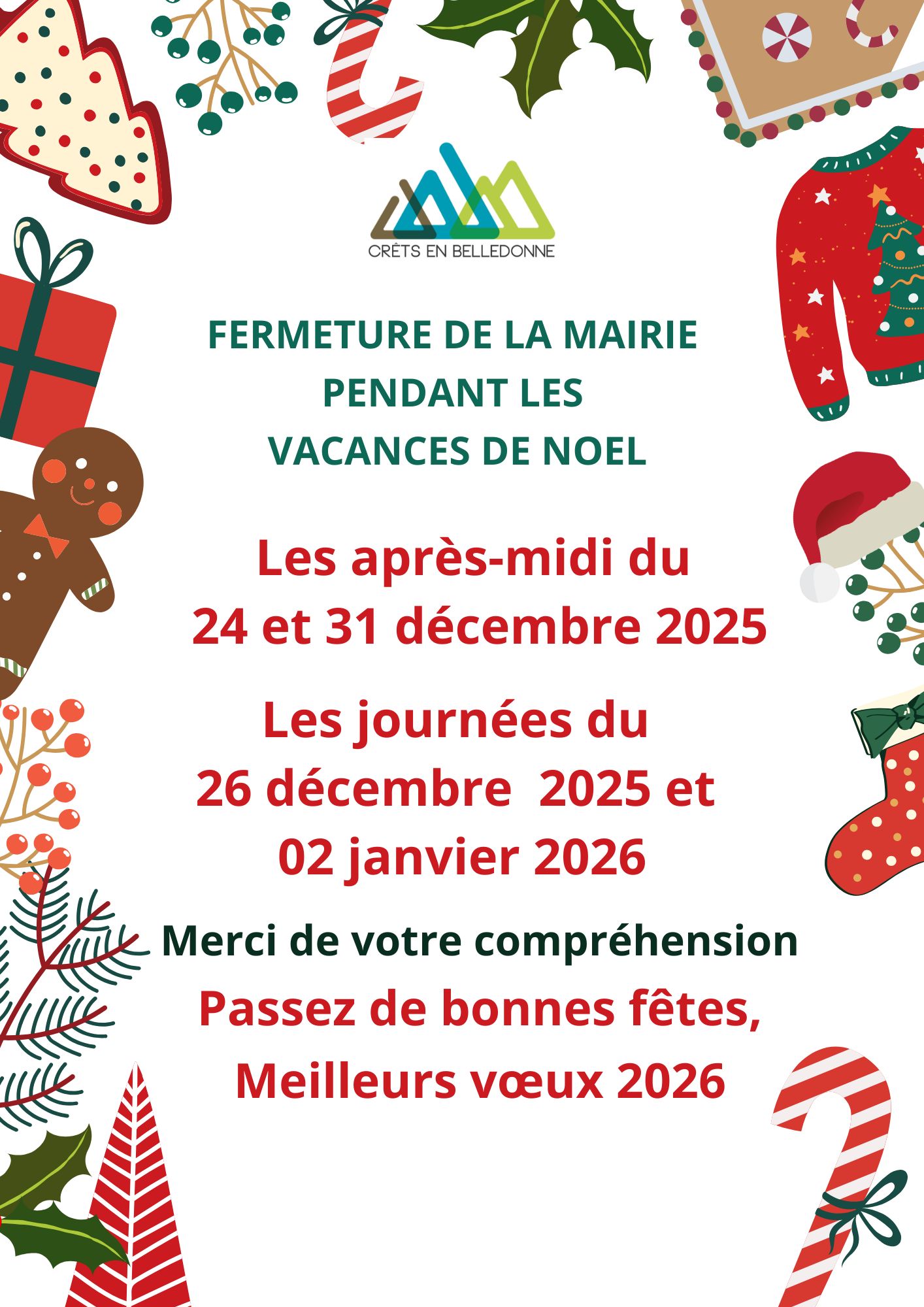 La médiathèque sera ouverte : Le mercredi 24 décembre de 10h à 12h Le vendredi 26 décembre de 10h à 12h /16h-18h30 Le samedi 27 décembre de 10h à 12h...