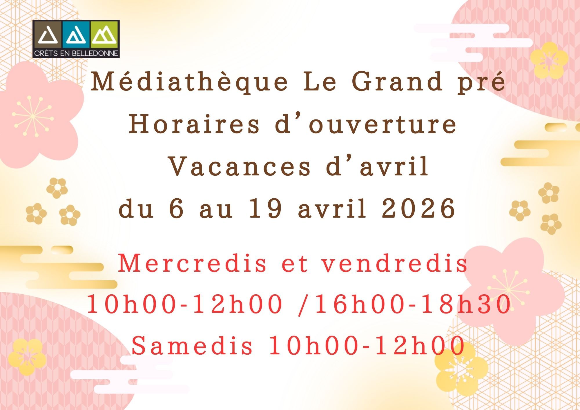 Horaires d'ouverture de la médiathèque - vacances de printemps