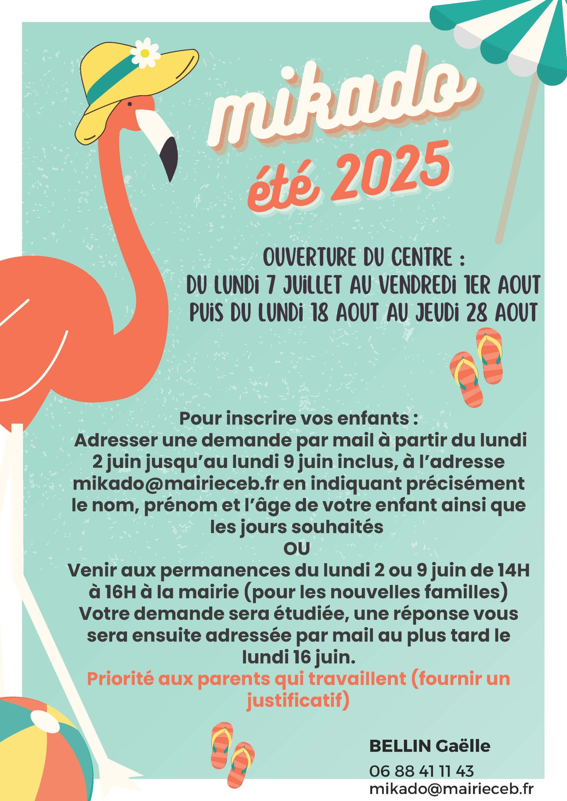 Mikado été 2025Ouverture du centre : du lundi 7 juillet au vendredi 1er aout puis du lundi 18 aout au jeudi 28 aout