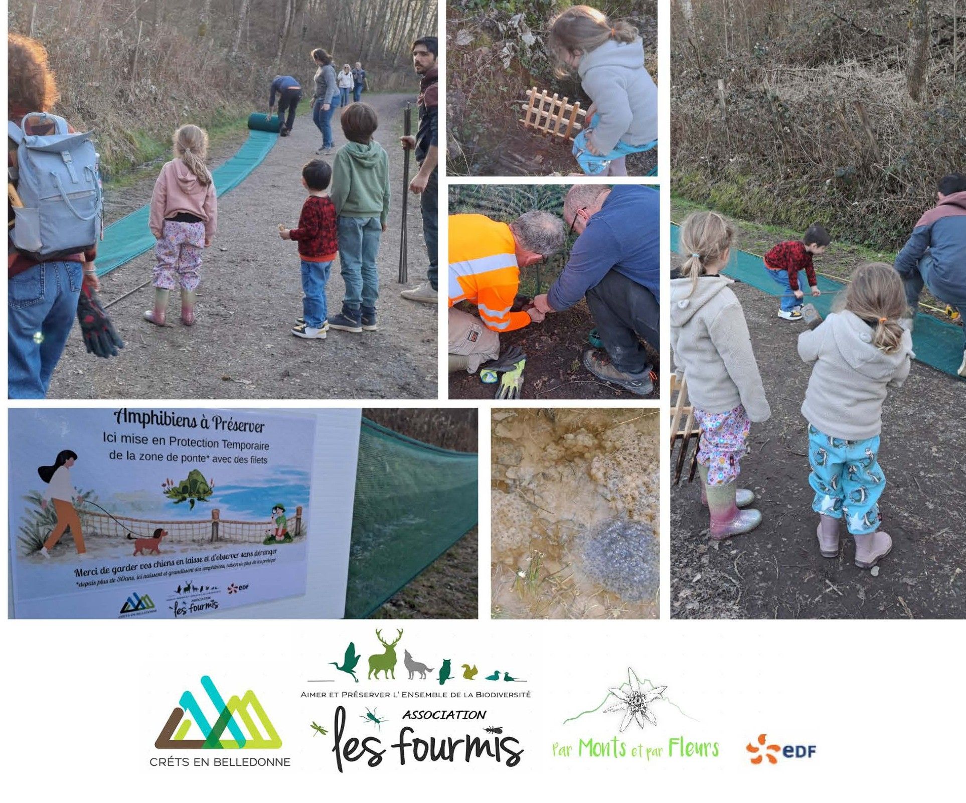 Pour soutenir les futures générations d'amphibiens, l'Association Les Fourmis, représentée par sa Présidente, Ingrid Szalay à l’initiative du projet et en partenariat avec la Mairie de Crêts en Belledonne, représentée par Frédéric Laval, conseiller Municipal ont décidé d’installer temporairement des filets de protection et des petits barrages.